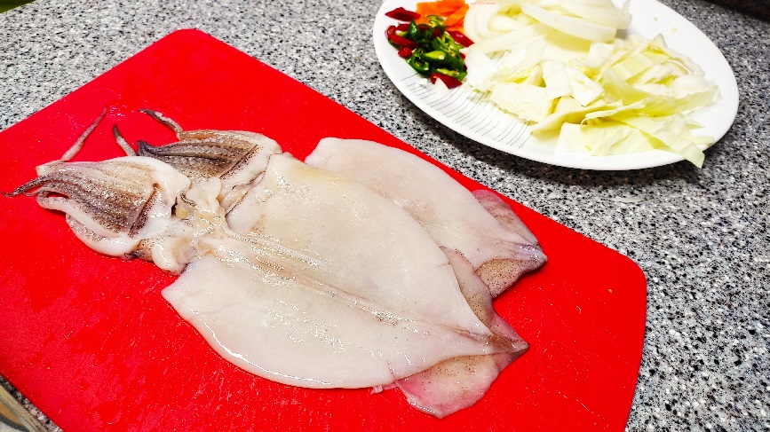 2. 싱싱한 오징어도 꼼꼼하게 손질한후 먹기좋은 크기로 썰어주면 됩니다.