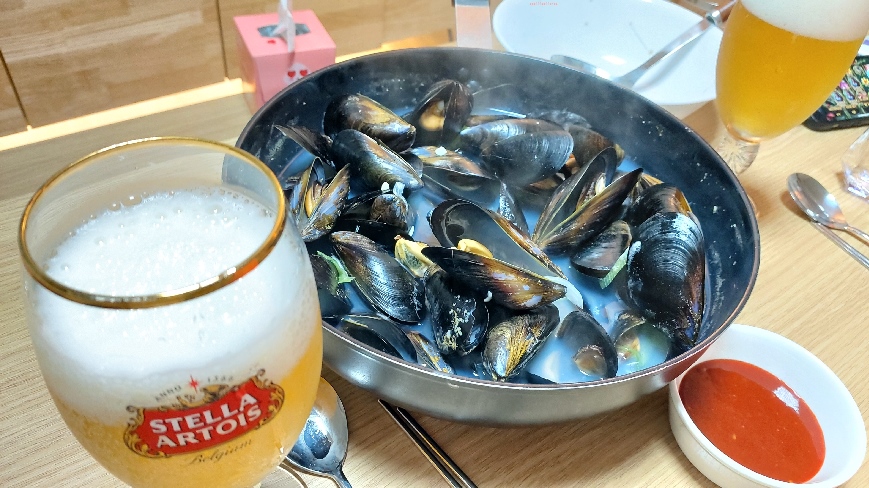 The plump mussels and the cool soup are the best side dishes for soju!!