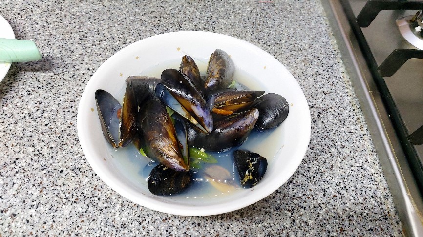 1. 금방 수확한 알이굵은 신선한 홍합을 준비해줍니다.