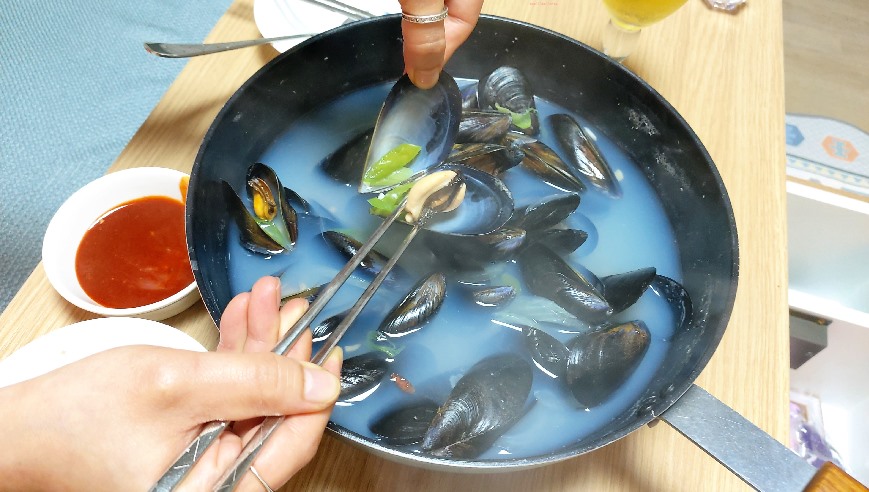홍합에 붙어있는 족사는 밑으로 잡아당기면 간단하게 빼낼 수 있으니 참고하셔요.