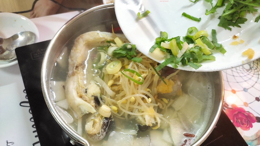 - When the soup boils, add the onion bean sprouts and green onion and bring to a boil~