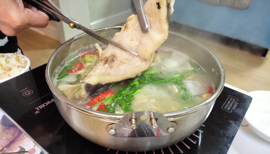 - When you eat, put it on the burner and boil it while you eat it, and I showed you how to make a luxury cod soup that has a refreshing broth.