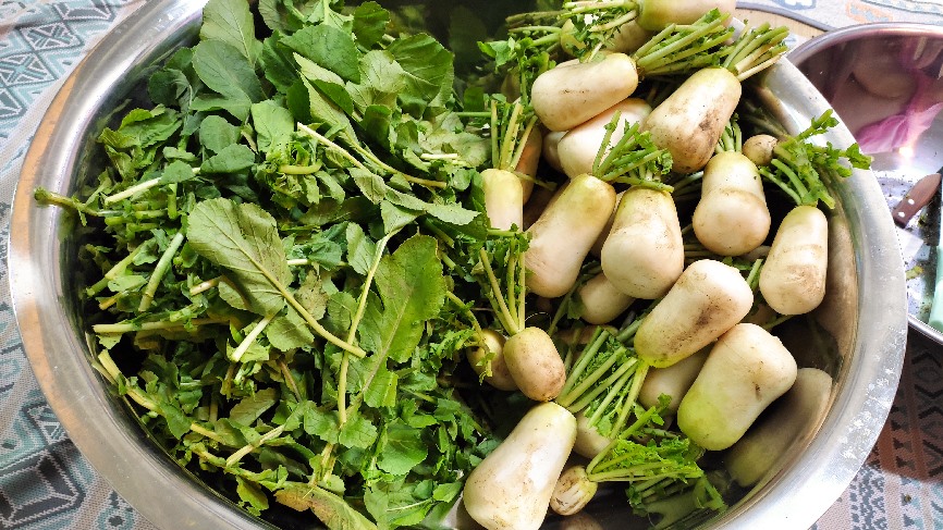 - Clean radishes, chop ginger plum extract and garlic, wash once and pickle in salt.