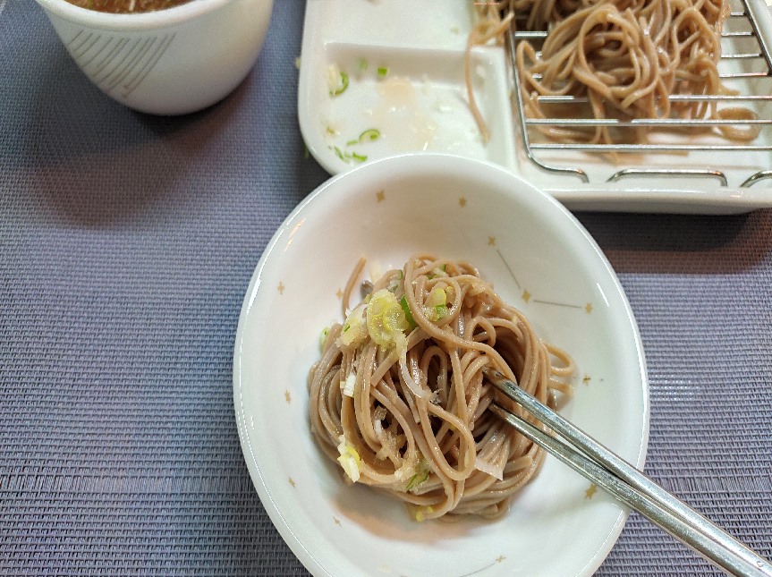 - Put the noodles on a plate and put it in a cool broth with wasabi, cucumber, pickled radish, etc., and eat it.